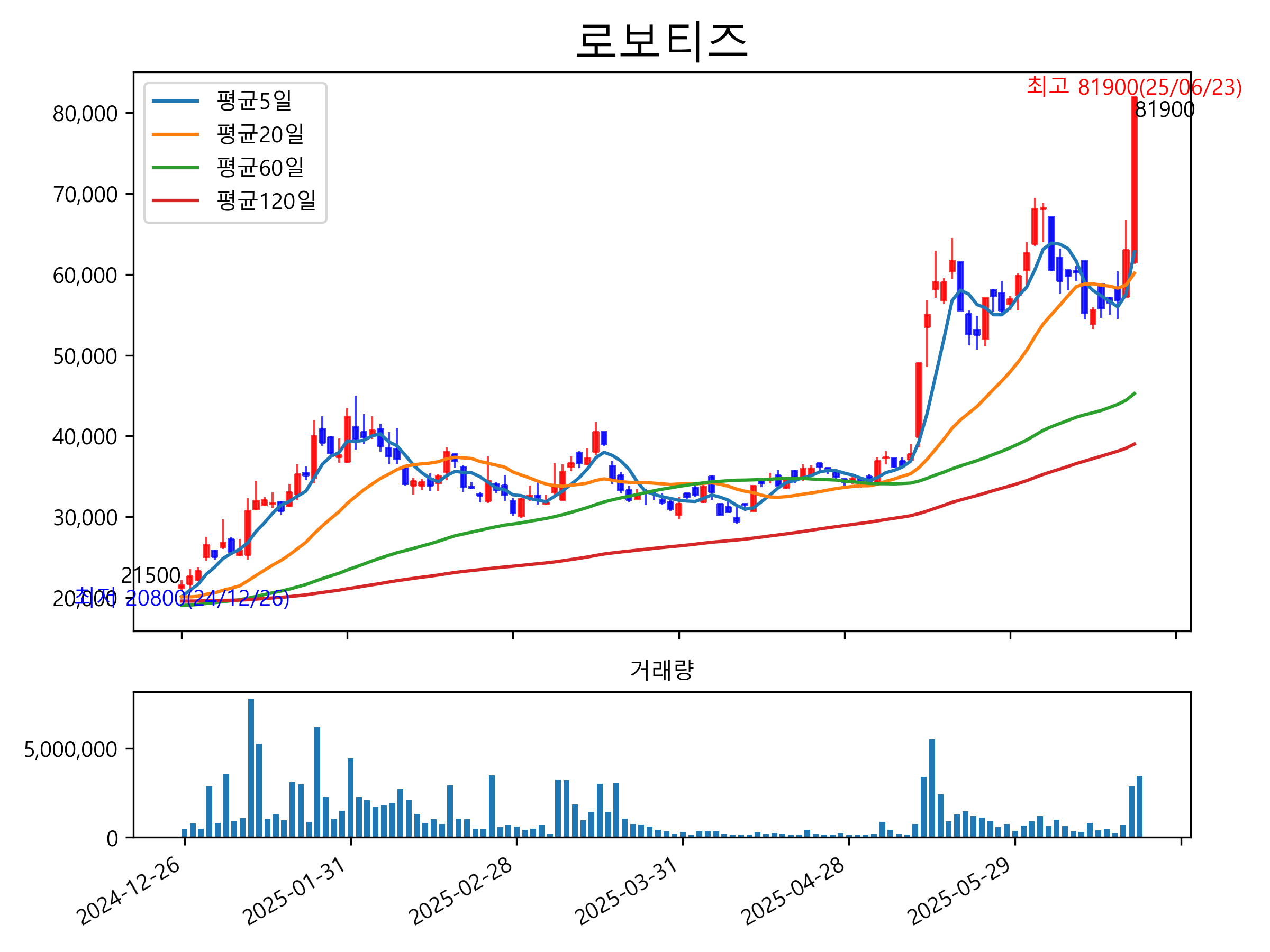 52주 최고가는 81,900원(2025-06-23), 52주 최저가는 16,210원(2024-08-05)으로 52주간 주가 상승률은 262.4% 입니다.