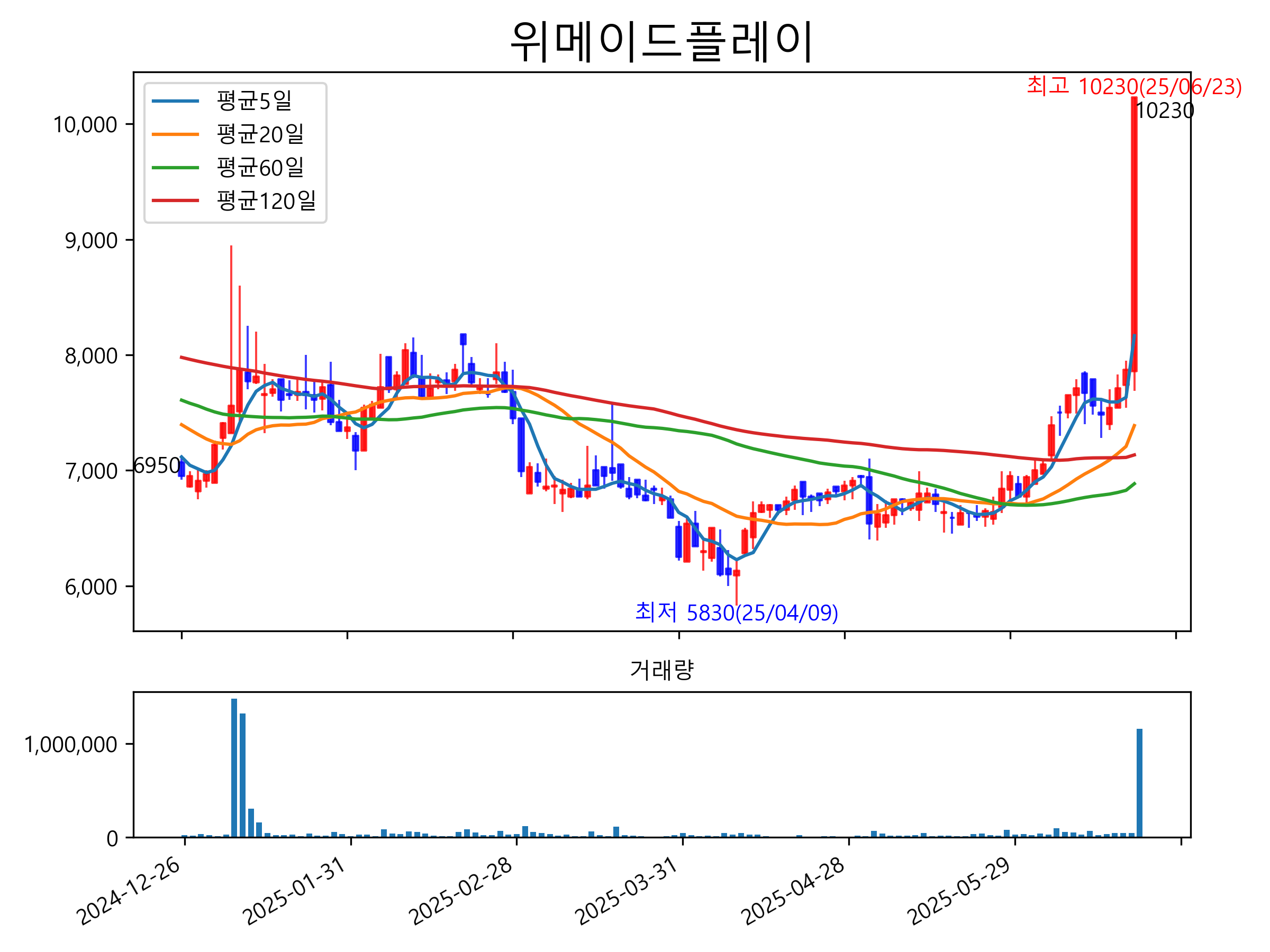 위메이드플레이(123420)의 6월 23일 주가가 급상승했습니다. 위메이드플레이에 대해 어떠한 기업이며, 주식정보 및 주가 상한가 이유에 대해서 알려드리겠습니다.