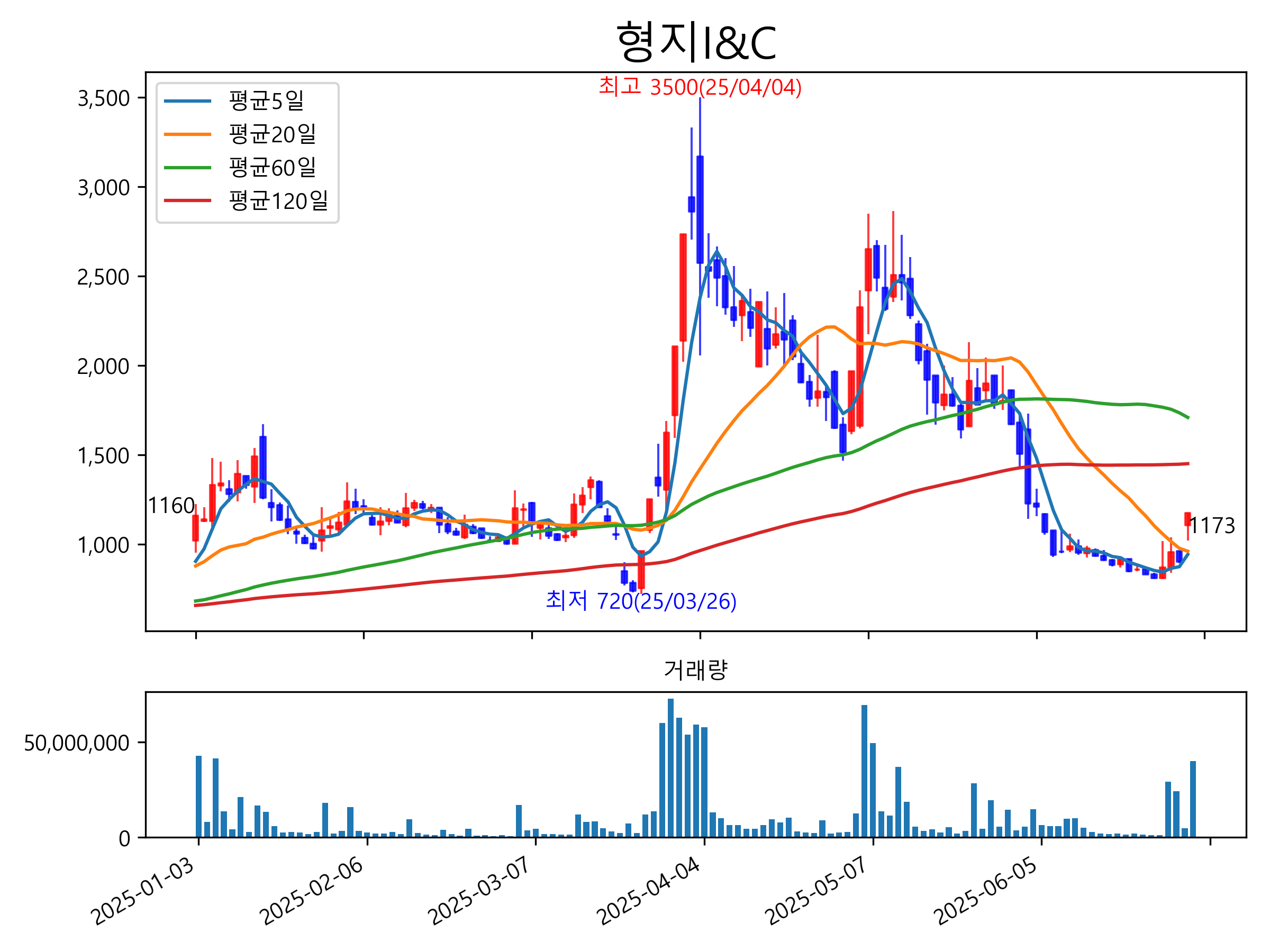 최근 6개월간 캔들차트 및 이동평균선입니다.
