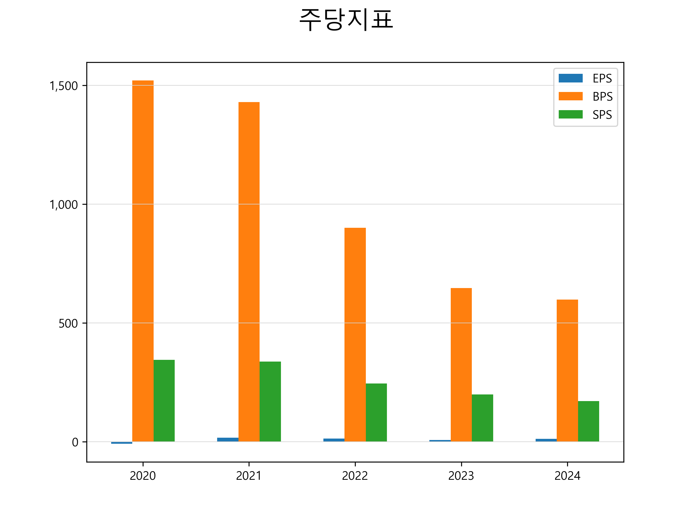 ※ EPS 주당 순이익, BPS 주당 순자산, CPS 주당 현금흐름, SPS 주당 매출액, PER 주가수익비율, PBR 주가순자산비율, PCR :주가현금비율, PSR 주가매출비율, DPS 주당배당금